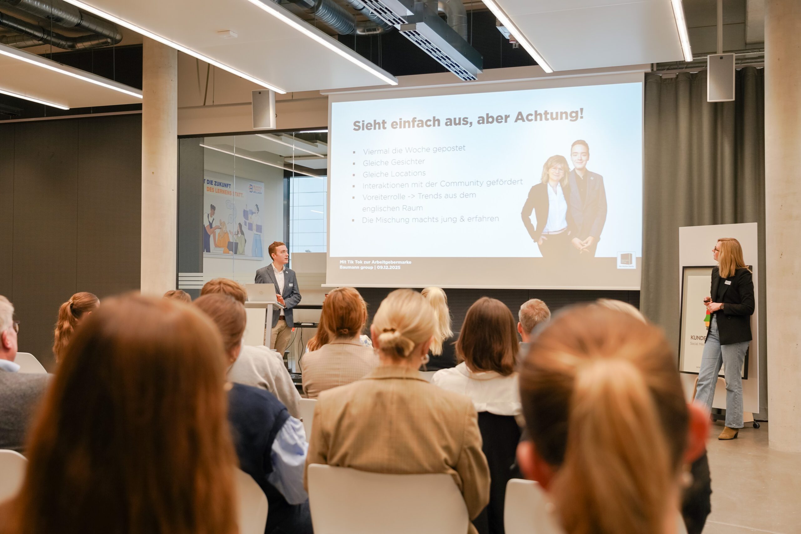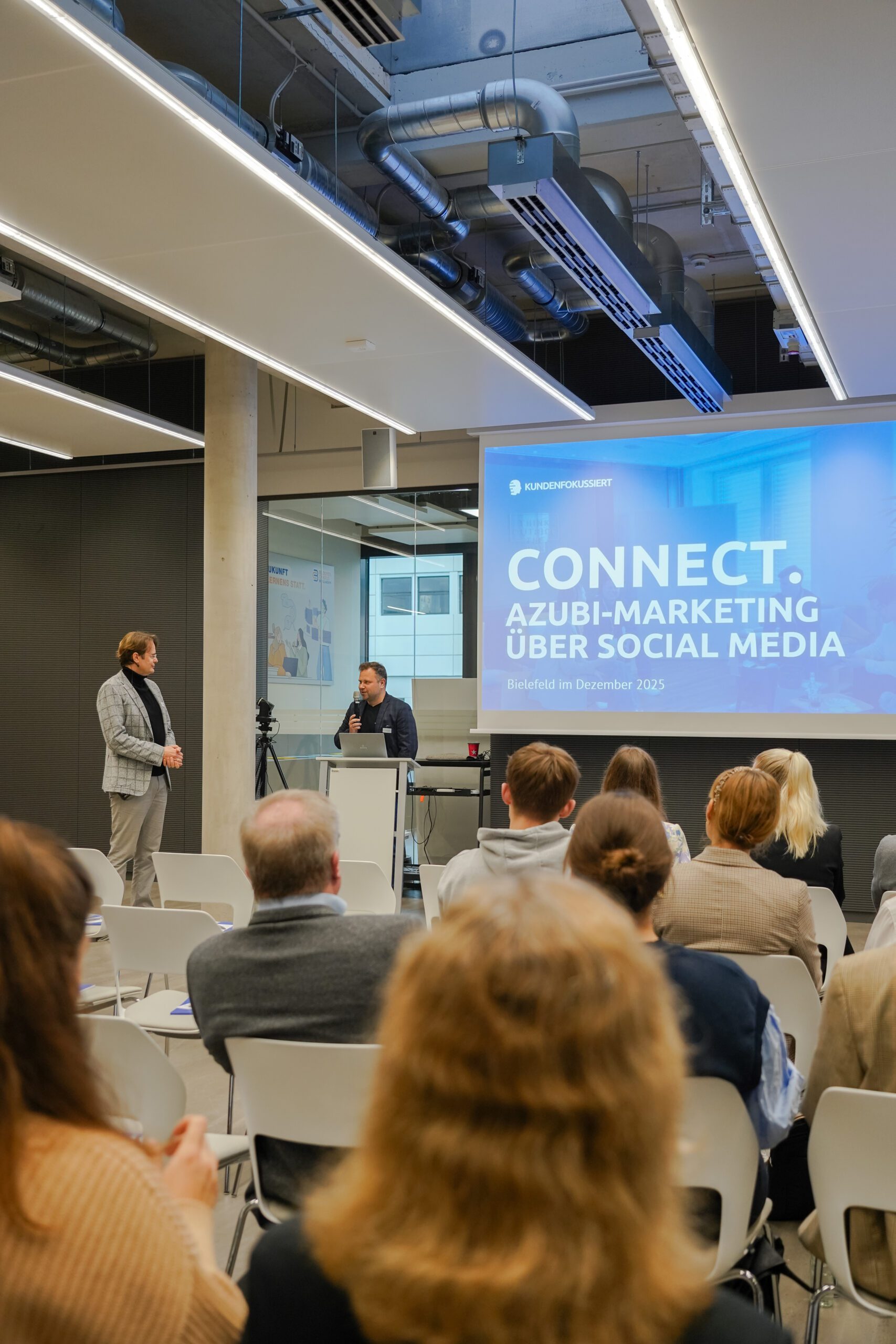 Die erste Ausgabe von CONNECT. fand im Dezember 2025 auf dem Bildungscampus von Böllhoff statt. Mit dabei waren unter anderem Dr. Oetker, Schüco, die baumann Group und natürlich Böllhoff selbst. Die Unternehmen gaben spannende Einblicke in ihre Azubi-Marketing-Strategien.